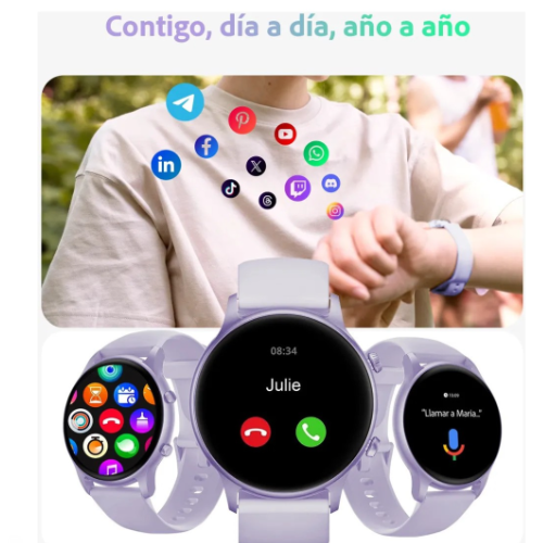 Asistente de voz integrado: Utiliza comandos de voz para realizar tareas como responder mensajes de WhatsApp o ajustar configuraciones de tu smartwatch para mujer.